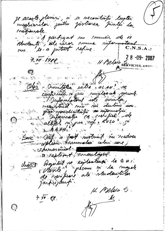 Sarcini: De a stabili si alte texte romînești in care obiectivul aduce asemenea transformari. Din cine este format anturajul sau, discutiile cu continut nationalist si dusmanos pe care le poarta cu acestia. Daca nu cumva aceasta activitate este dirijata de ________ sau alte elemente nationaliste cu care obiectivul este in bune relatii.